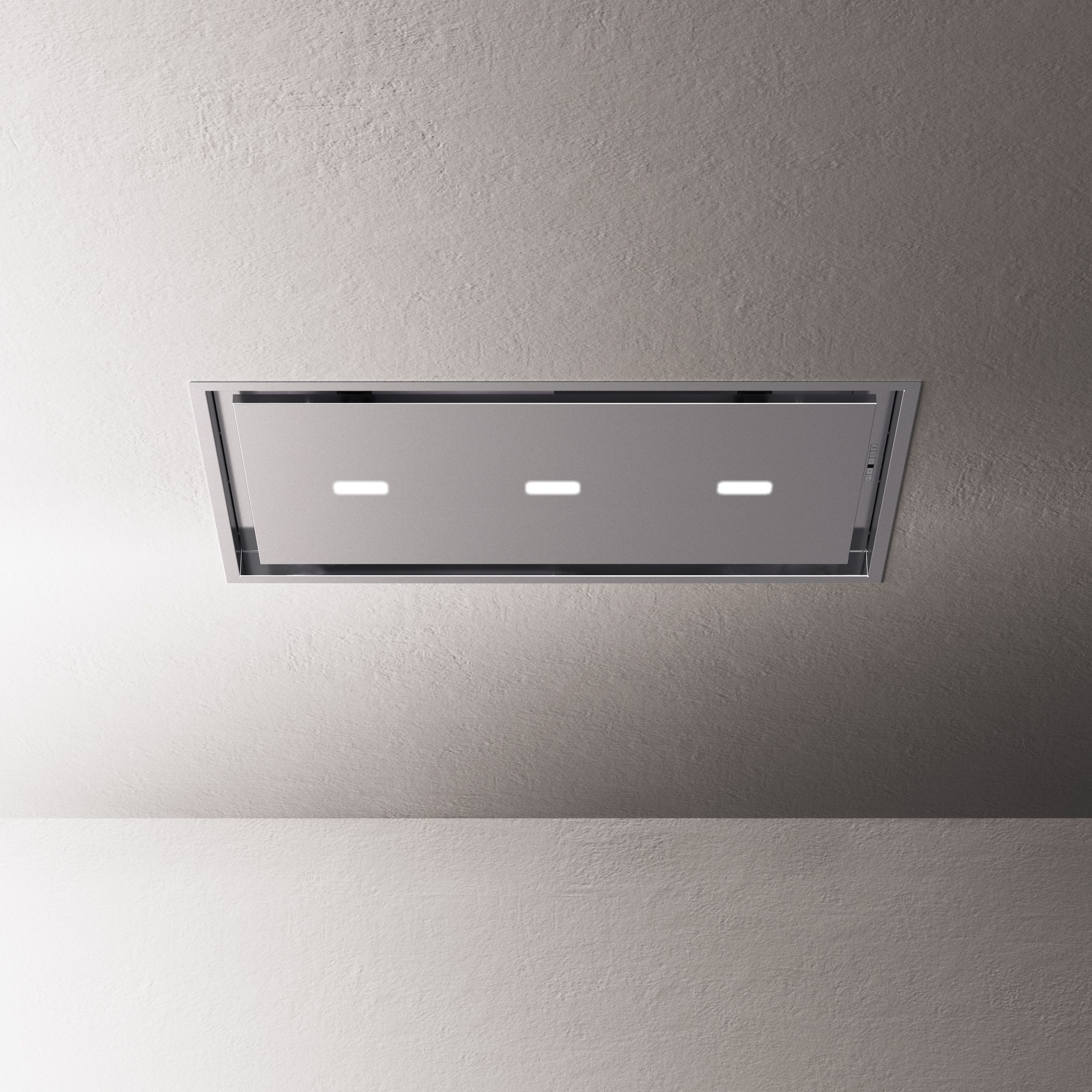 This is a system called perimetral aspiration which conveys the fumes on the sides of the panels, allowing to have a nicer design, to reduce the noise of the hood, to increase the capturing of the fumes and to simplify the cleaning operations of the products.