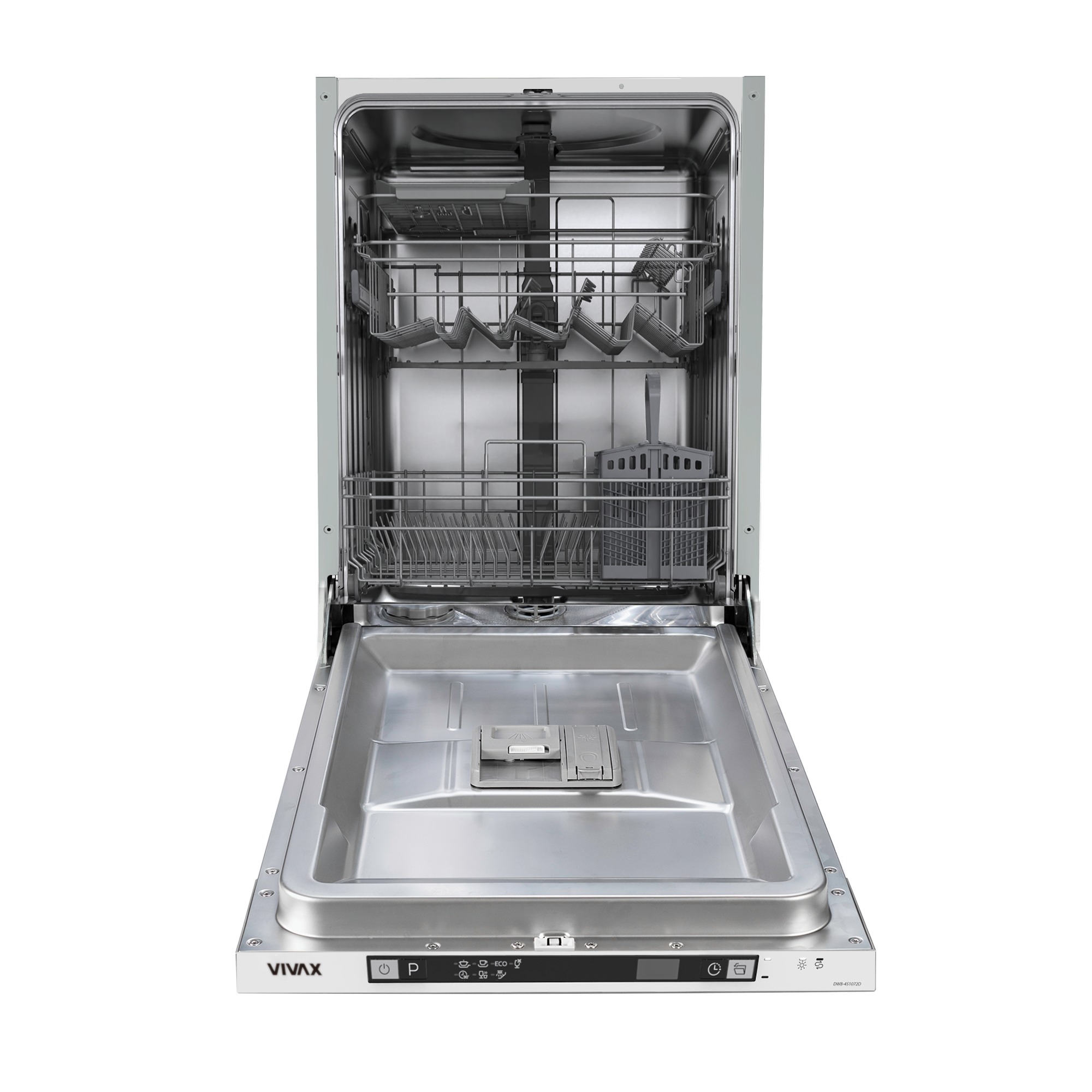 VIVAX perilica posuđa DW-451072D je idealna za manja domaćinstva. Ova perilica osigurava mjesto za 10 kompleta posuđa u dvije velike košare s preklopnim nosačima i dodatnom plitkom kliznom košarom smještenom na gornjoj košari. Gornja košara perilice posuđa je podesiva u dvije visine s dodatnom policom za šalice.