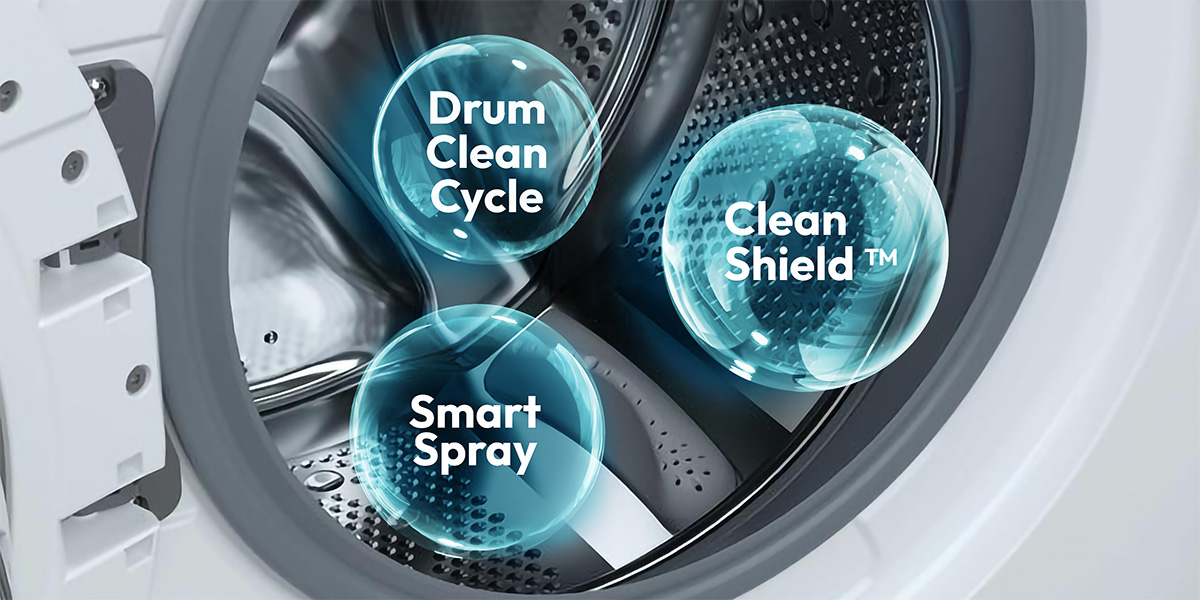 Uživajte u čišćem i svježijem rublju. Smart Spray koristi dvostruko ubrizgavanje vode za ispiranje ostataka deterdženta s vrata i brtve, dok Hygiene Cycle održava perilicu čistom i svježom, pranje za pranjem.