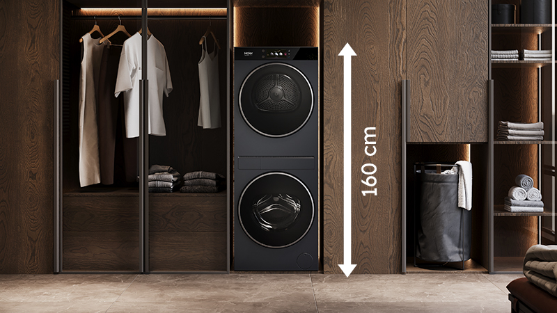 Uživajte u 1,60 metara čiste elegancije, kontrole i učinkovitosti – s jednim zaslonom koji upravlja i perilicom i sušilicom.