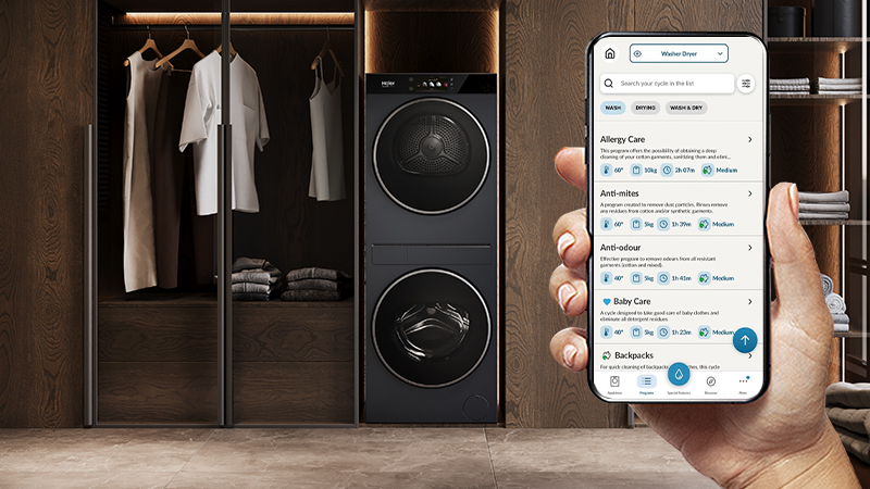 Upravljajte pranjem i sušenjem, primajte obavijesti i prilagodite programe izravno putem hOn aplikacije. Pametna, intuitivna i uvijek dostupna kontrola – na dohvat ruke.