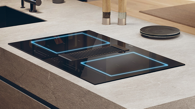 Robusna ploča za kuhanje koja se lako čisti bez kompromisa između profesionalnih značajki i uravnoteženog minimalističkog dizajna koja se uklapa u svaki stil kuhinje. 2 aparata u 1, ušteda prostora i visoke performanse daju više slobode unutar dizajna kuhinje. Tanka napa integrirana u ploču za kuhanje sprječava da se pare od kuhanja uzdignu i neugodno šire po cijeloj prostoriji.