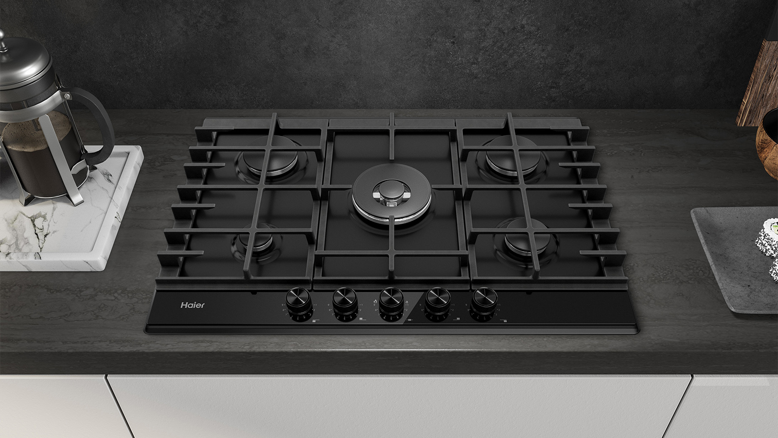 Iskusite doživljaj profesionalnih rezultata pripreme hrane u udobnosti vaše kuhinje uz Haier Series 4 plinske ploče na staklu. Elegantna kombinacija crnog stakla i rešetki od lijevanog željeza donose dašak minimalističnog dizajna u ambijent vaše kuhinje. Praktični gumbi kvalitetne završne obrade i glatka površina kaljenog stakla upotpunjuju sofisticiran izgled ploče, a napredna Preci Flame tehnologija jamči precizno podešavanje intenziteta plamena, do čak 9 razina.