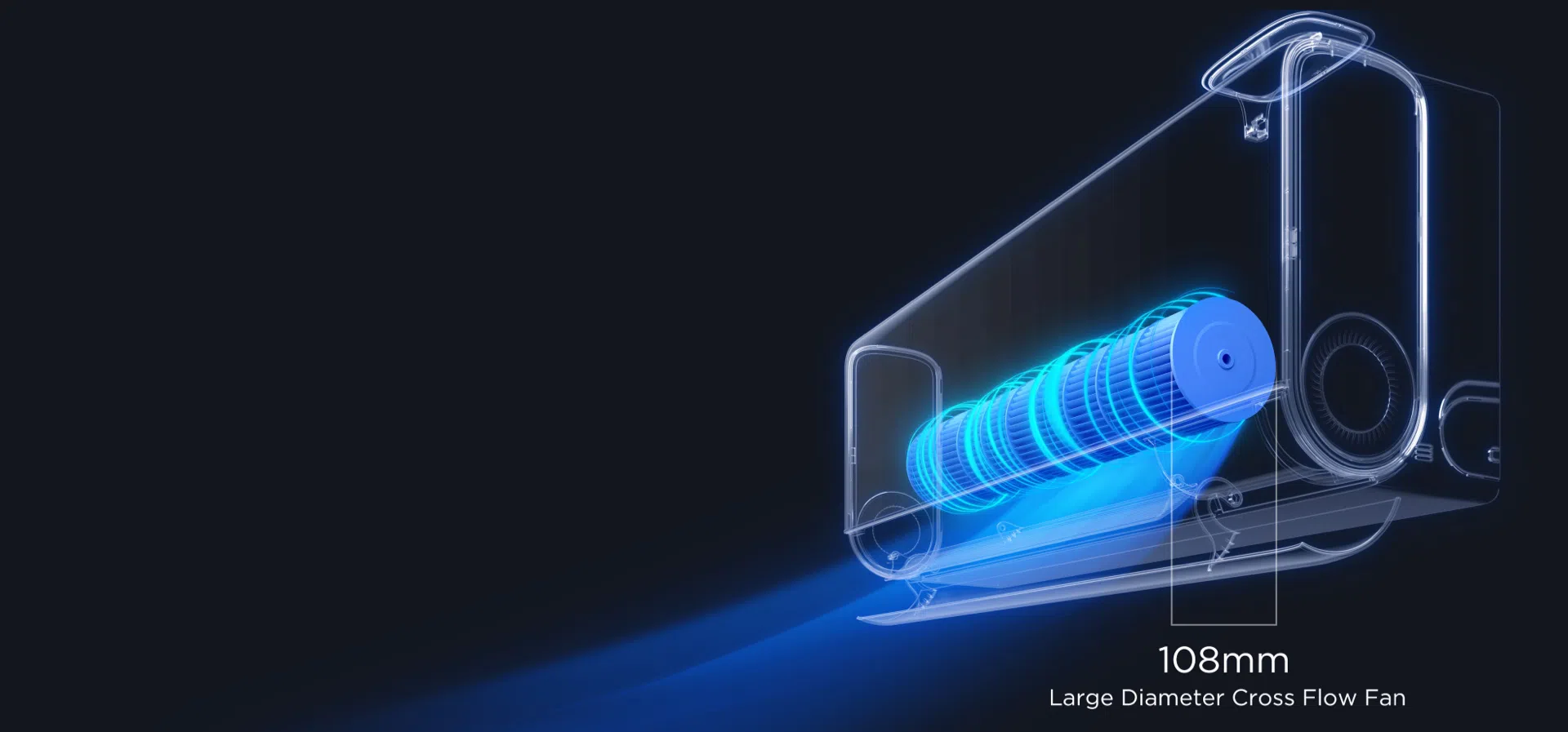 108 mm ventilator s velikim presjekom povećava količinu zraka uz manju buku.