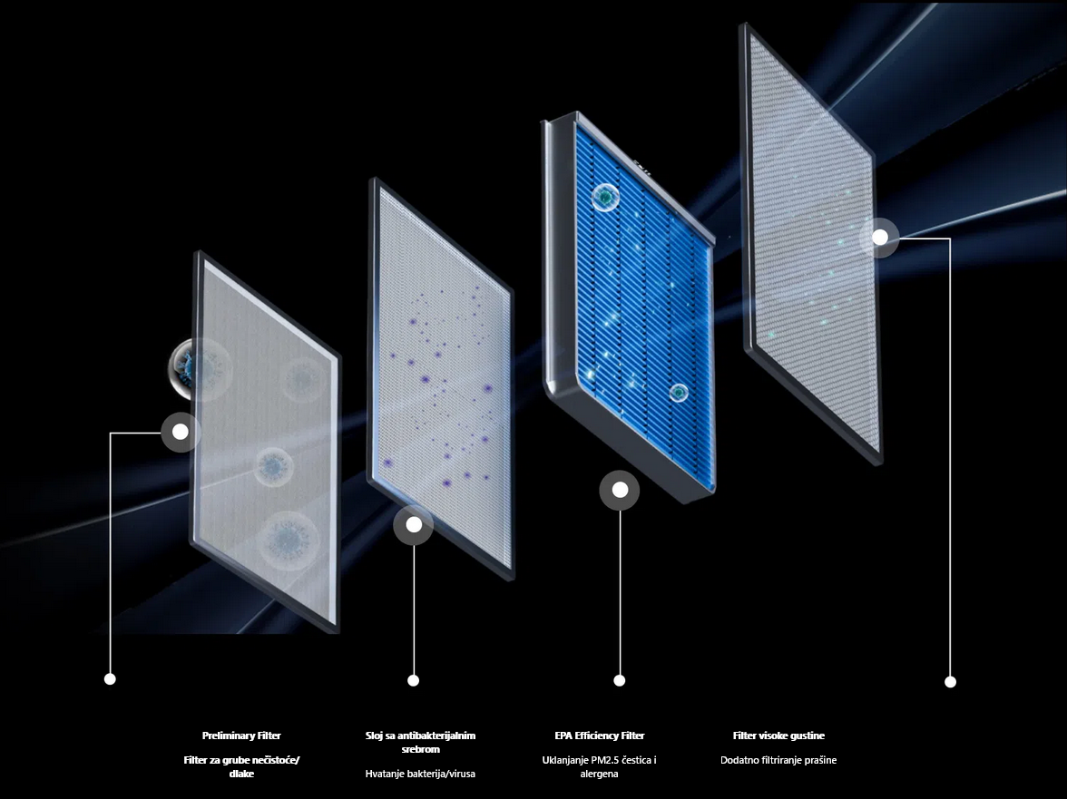 Višeslojni sustav filtracije uklanja prašinu, alergene i neugodne mirise.