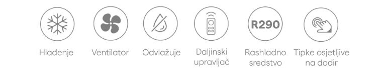 - Kapacitet hlađenja: 9000 BTU/h / 2.6 kW
