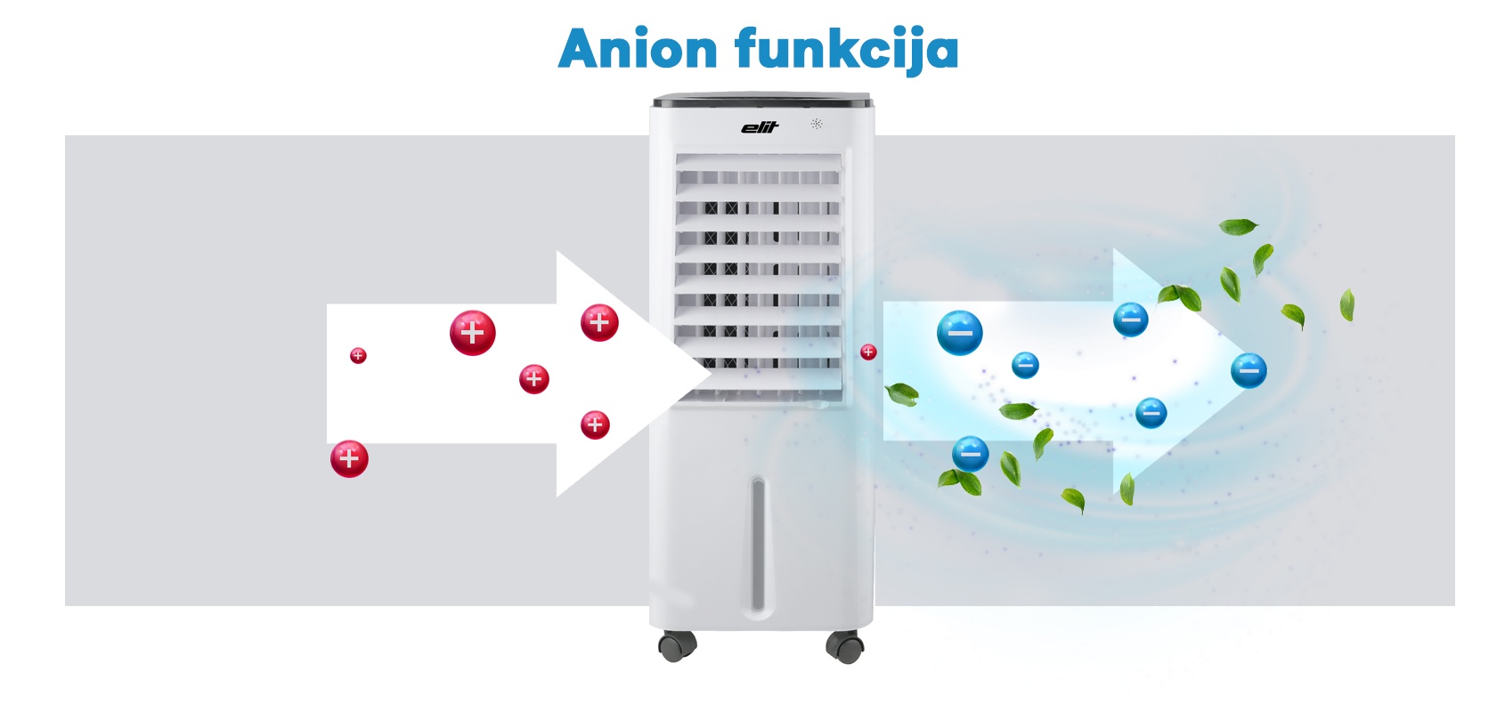 Posebna vrijednost ovog uređaja leži u dodatnoj funkciji anion pročišćavanja zraka. Negativni ioni (anioni) pomažu u uklanjanju prašine, peludi, dima i drugih nečistoća iz zraka, poboljšavajući njegovu kvalitetu te doprinoseći općem osjećaju svježine i čistoće.