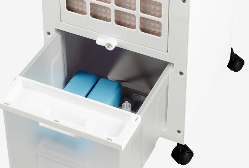 Za dodatni i intenzivniji učinak hlađenja, uređaj dolazi s dvije posebne kutije za led koje možete napuniti vodom i zamrznuti, a zatim ih jednostavno umetnuti u spremnik za vodu. Ove kutije omogućuju da zrak koji prolazi kroz uređaj bude još hladniji, pružajući osjećaj prave svježine čak i tijekom najtoplijih dana. Zahvaljujući ovom praktičnom dodatku, hlađenje je ne samo brže, već i dugotrajnije, a razina udobnosti osjetno viša.