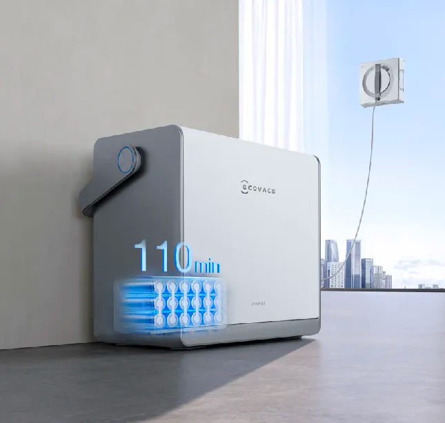 Ugrađena litij-ionska baterija velikog kapaciteta osigurava kontinuirano napajanje za WINBOT W2 PRO OMNI, omogućujući čišćenje prozora i na mjestima bez pristupa električnoj utičnici. Prikladna je za sve vrste scenarija čišćenja, od unutarnjih prozora do vanjskih staklenih površina. Jedno punjenje omogućuje do 110 minuta rada, što odgovara površini od približno 55 m².