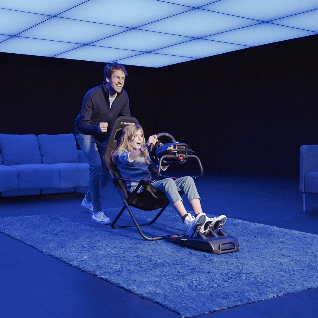 Svoj Playseat® Challenge možete pohraniti u male prostore zahvaljujući njegovom jedinstvenom sklopivom dizajnu, a ne morate čak ni ukloniti kotač i set pedala.