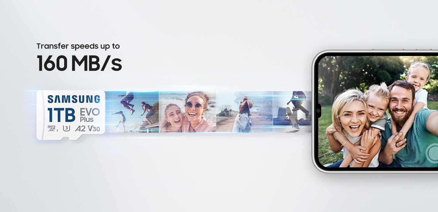 Prenosivost koja ne dovodi u pitanje performanse. Uz hiper brzi U3, klase 10, nazivne brzine prijenosa do 160 MB/s¹,² EVO Plus održava vaš svakodnevni rad punim kapacitetom. Njegova ocjena performansi aplikacije od A2³ i ocjena videozapisa V30 omogućuju optimalni rad svih vaših aplikacija dok gledate 4K UHD videozapise s briljantnim detaljima