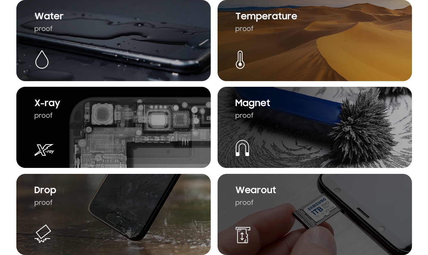 6-dokaz bezbrižnosti. EVO Plus upušta se u životne avanture sa zaštitom od vode¹, temperature², X-zraka³, magneta⁴, pada⁵ i zaštite od habanja⁶. Vaša nezamjenjiva iskustva zaslužuju pouzdan izbor. I sve je to podržano pouzdanim 10-godišnjim ograničenim jamstvom