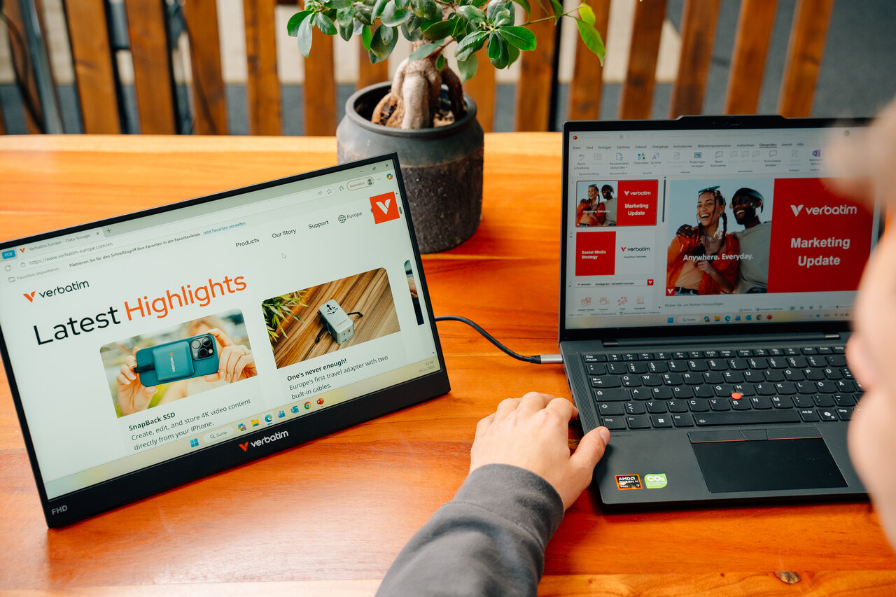 Iskusite jednostavno upravljanje s prijenosnim monitorom osjetljivim na dodir Verbatim LIGHT serije 15,6”. S potpunom funkcionalnošću višestrukog dodira s 10 točaka, ovaj kompaktni zaslon omogućuje vam prevlačenje, dodirivanje, zumiranje i crtanje izravno na zaslonu, što ga čini idealnim za dizajnere, profesionalce i studente. USB-C priključak s plug & play tehnologijom pojednostavljuje vaše postavljanje – jedan kabel s lakoćom obrađuje napajanje, video i dodirni unos.