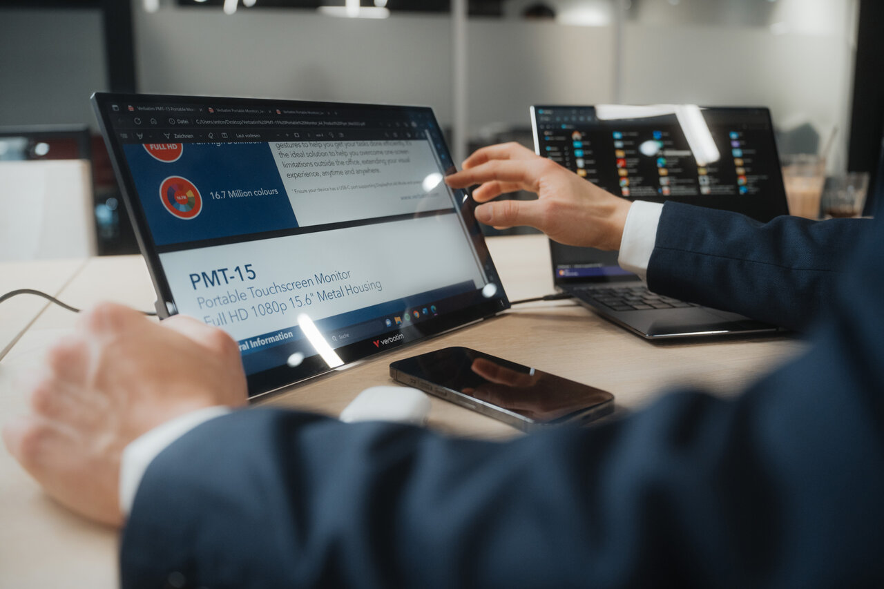 Prijenosni monitor Verbatim osjetljiv na dodir daje vam dodatnu dimenziju pri radu i igri. Možete ga koristiti kao drugi zaslon za prijenosno računalo kada putujete ili održavate prezentacije „jedan na jedan“ ili kao veliki dodatni zaslon za svoj telefon, tablet ili prijenosni sustav za igranje. Kompaktan i svestran, prijenosni monitor omogućuje vam vrhunsku fleksibilnost za povećanu produktivnost i zabavu dok ste u pokretu.