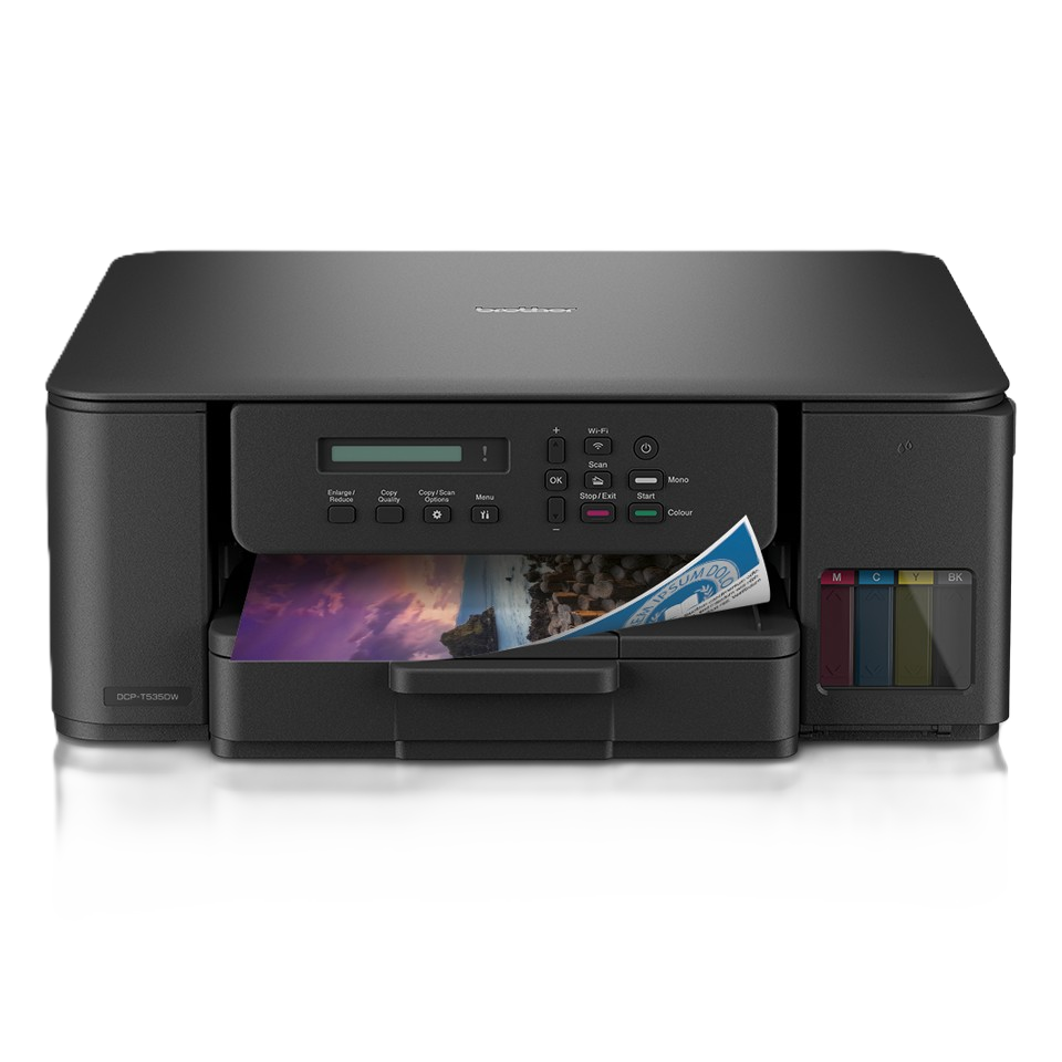 Ispisujte više za manje novca i smanjite troškove ispisa u boji uz bočice tinte izuzetno velikog kapaciteta i rezervoare koji se lako pune. Bez obzira radite li u kućnom uredu, dnevnoj sobi ili kuhinji, uživajte u jednostavnom povezivanju i brzom, bezbrižnom ispisu uz tintni višenamjenski uređaj 3-u-1 s rezervoarima DCP-T535DW. Ispisujte izravno s ili skenirajte u putem računala i mobilne aplikacije.