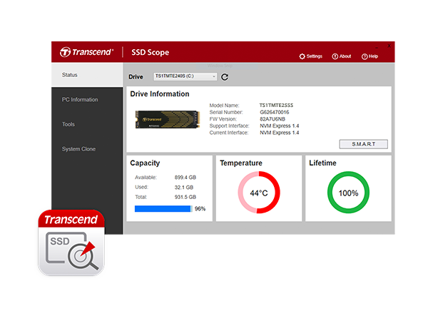Transcend SSD Scope napredan je i jednostavan softverski alat koji vam pomaže održavati vaš Transcend SSD u optimalnom stanju te osigurava dugotrajne i učinkovite performanse.