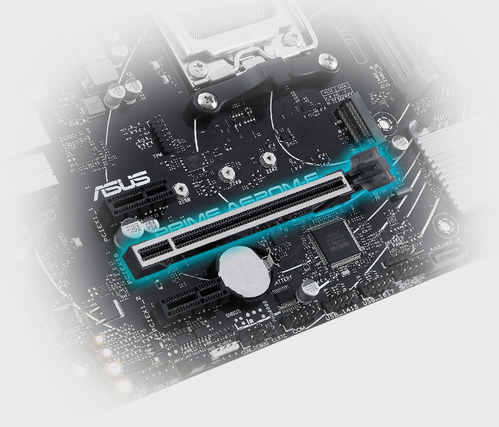 PRIME A620M-E-CSM nudi PCIe 4.0 utor za povezivanje grafičkih kartica. Velika propusnost i iznimno velike brzine prijenosa omogućuju izradu bogato opremljenih konfiguracija koje bez poteškoća podnose velika opterećenja.