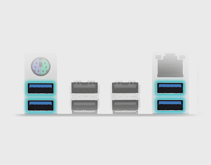 Brojni USB priključci podržavaju napredne konfiguracije s velikim brojem perifernih uređaja, uključujući stražnje USB Type-A konektore s brzim USB 3.2 Gen 1 sučeljem za kompatibilna kućišta.
