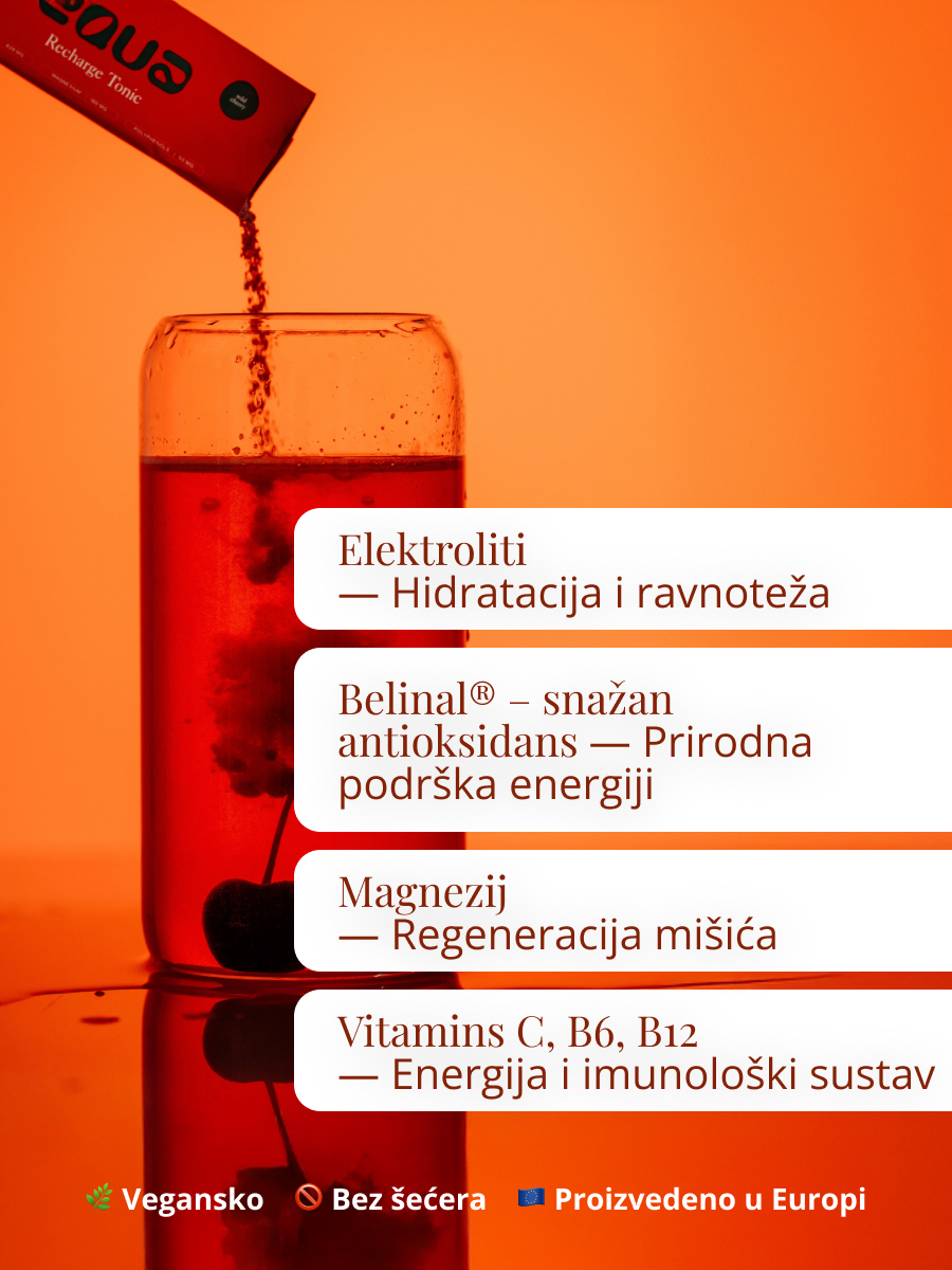Osvježavajući napitak s elektrolitima okusa divlje trešnje, osmišljen za svakodnevnu hidrataciju.